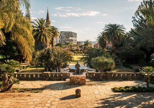The Minen Hotel, fondly known as the “Grand Old Lady” of Tsumeb, is a historic property with more than a century of tradition. Conveniently located in the heart of Tsumeb, it serves as a popular stopover for travelers en route to Etosha National Park and northern Namibia. The hotel is set within lush gardens, offering a tranquil atmosphere and a welcoming retreat. Guests can enjoy comfortable accommodations, a renowned restaurant serving German‑influenced cuisine, and a lively beer garden that has become a local landmark. With its blend of heritage charm and modern amenities, the Minen Hotel provides both leisure and business travelers with a relaxing base from which to explore the cultural and natural highlights of the region.